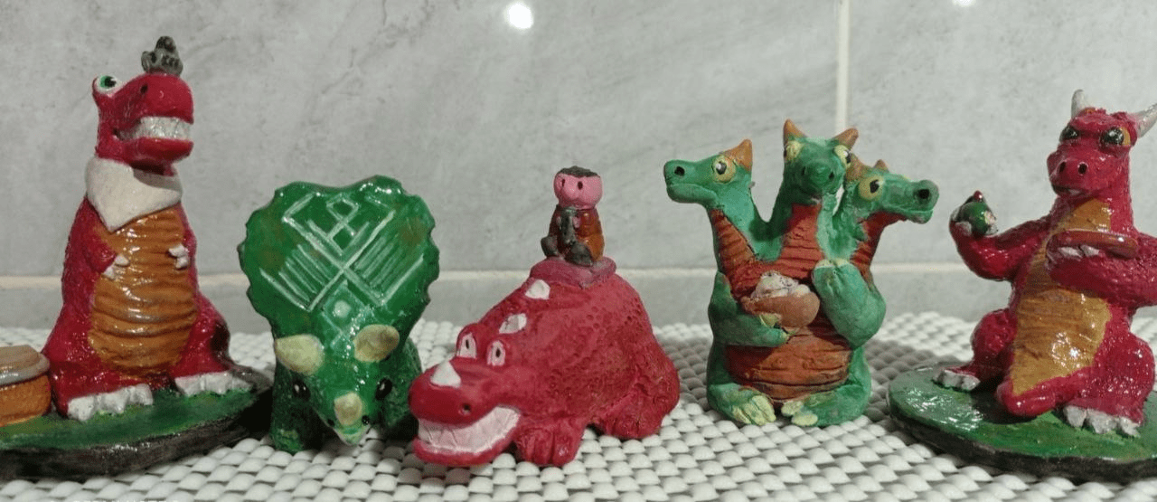 В каждый комочек глины, в каждый кусочек пластилина Никита вкладывает невероятную фантазию, данную ему Богом. К слову, в его семье он — первый представитель такого занятия и творчества вообще… Плоды труда мальчика — это глиняная «армия» добрых котиков, зайчиков, птенцов, мышат, кроликов, симпатичных монстриков-дракончиков, таинственных гномов. Есть там и слоны, коровки, волы, медведи, киты, овцы, попугаи, черепахи, совы… Если бы вы их только увидели своими глазами! Влюбились бы сразу! Ребенок собственноручно творит такие милые образы, подбирает такие теплые и уместные цвета! Сам лепит, сам разрисовывает, сам лакирует. Сам наделяет голосом свои игрушки-свищики, да так, что они издают идеальную звуковую гамму и тогда счастливый играет на них простые мелодии, которые диктует его окрыленное сердце! В конце концов и по глину в карьер Никита ходит сам. Собственноручно пересеивает ее, перетирает, сушит, размачивает, хранит. Ребенку безразлично, профессиональная ли глина, или, может, для творчества и непригодна. Никита, окрыленный вдохновением, изо дня в день делает из холодных недр теплые волшебные чудеса! Он очень мечтает о настоящем гончарном круге, а еще — о печи для обжигания изделий из глины.