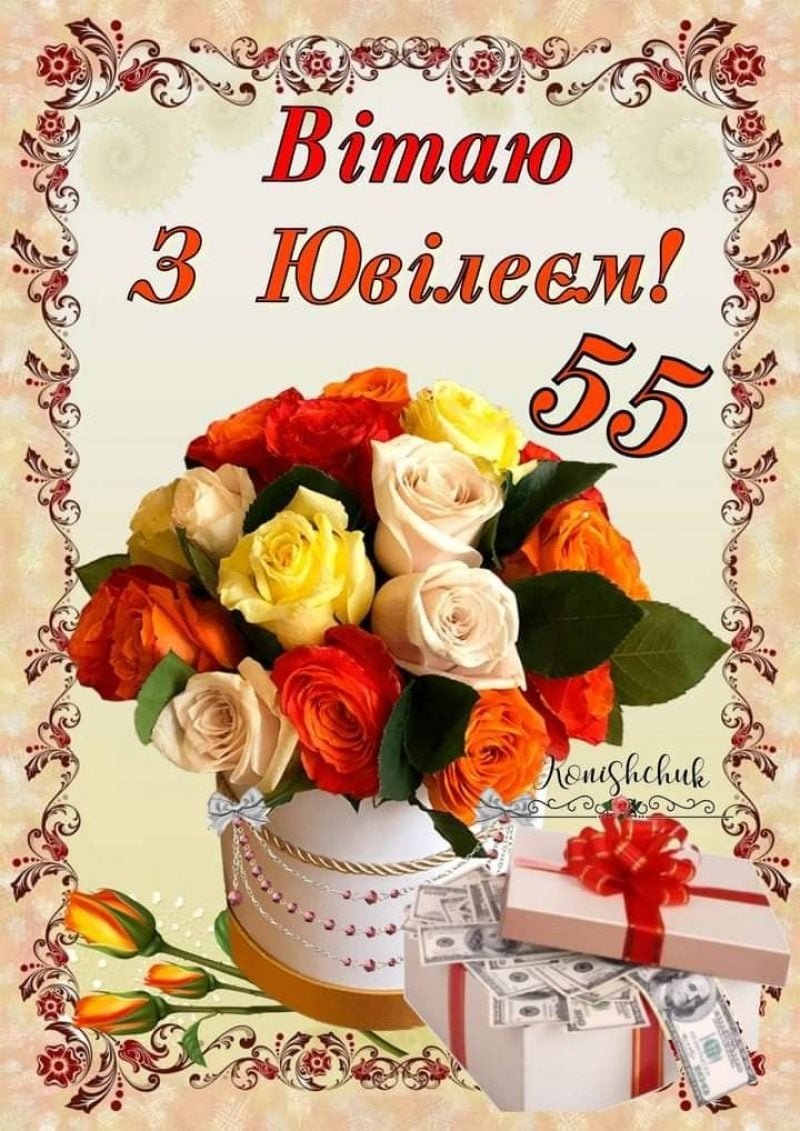 Привітання з ювілеєм 55 років жінці – листівки та картинки