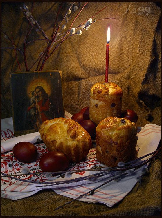 - Символічні: Велика кількість крашанок, великодні паски та сирні паски.