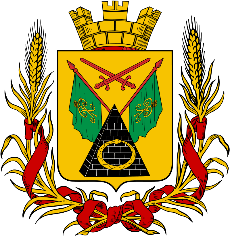 Вінчає композицію напис “Полтава” стилізованим старослов’янським шрифтом, причому буква “Т” зображена у вигляді геральдичного хреста, який отіняє собою герб. Фото із сайту rada-poltava.gov.ua.
