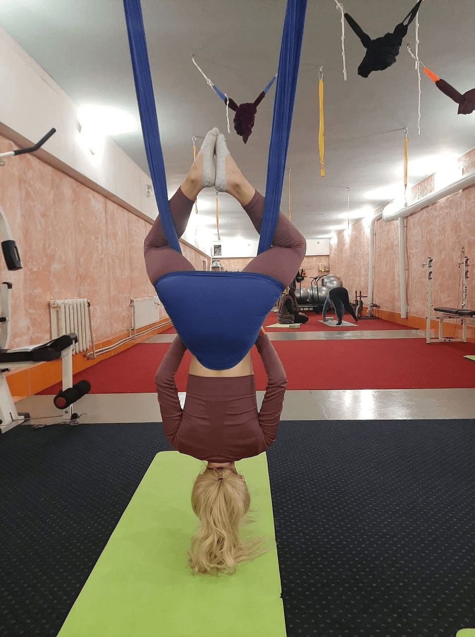 Заняття тренерки відвідують кілька десятків жінок різного віку. Тренування відбуваються в залі із застосуванням спеціальних тканинних полотен (їх ще часто називають гамаками), які підвішені до стелі приміщення. Є кілька програм, за якими проходять заняття, залежно від мети клієнта (наприклад, корекція ваги у бік збільшення чи зменшення, структуризація тіла і тому подібне). Це можуть бути розтяжка (стретчинг), силові тренування, власне йога чи повітряна гімнастика.