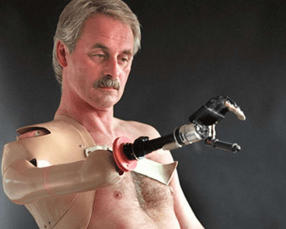 В Канаді пристрій, що міг зав’язувати шнурки, користуватися банкоматом або працювати з комп’ютерною мишкою, винайшли в 2007 році. При цьому важив такий протез 25 кілограмів.